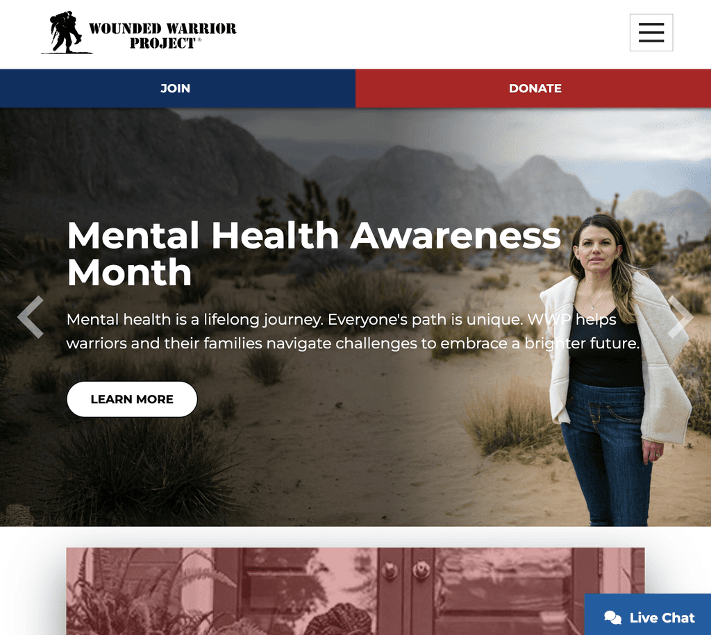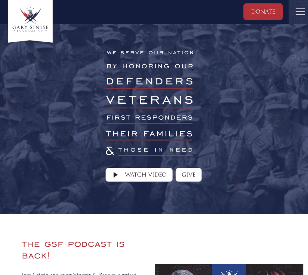 I applied a clear heading hierarchy to support keyboard navigation and screen reader use. Autoplay videos were avoided to reduce cognitive load and potential triggers, as seen on the current Gary Sinise Foundation site. Stable, rounded shapes were used to convey balance while still guiding the user through the experience, creating a calm, accessible layout that supports intuitive navigation.