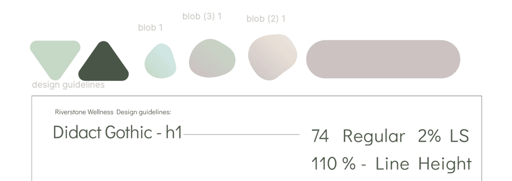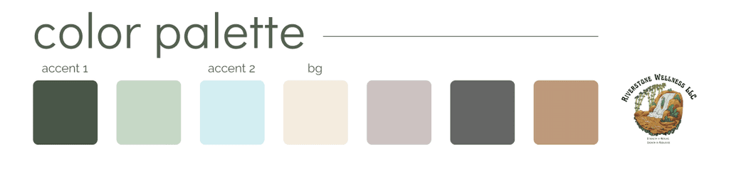 For my mockup, I selected a muted version of the soft, warm tones from the Riverstone Wellness brand logo to create a calming, distinct visual identity. This palette contrasts with the rich, energetic hues used by similar sites, offering a more grounded feel. In addition, chose ivory and darker tones for foreground and background to avoid the starkness of black and white, reinforcing a gentle aesthetic.
