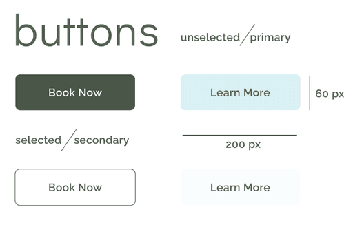 I limited the number of button types to maintain clarity while ensuring they were rounded rather than rectangular to avoid visually harsh elements. Each button exceeded the recommended size of 180 by 50 px for easy visibility and touch accessibility. Clear interaction states, such as hover and press feedback, were built into the design system to enhance usability
