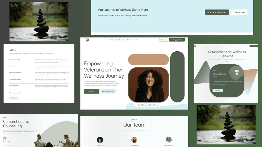 The counselor expressed the need for a landing page that clearly presented her counseling services and background, with a pathway directing potential clients to her SimplePractice portal for session booking. She emphasized a desire for a calm yet reassuring aesthetic tailored specifically to veterans and mental health. She had a week to launch the site.